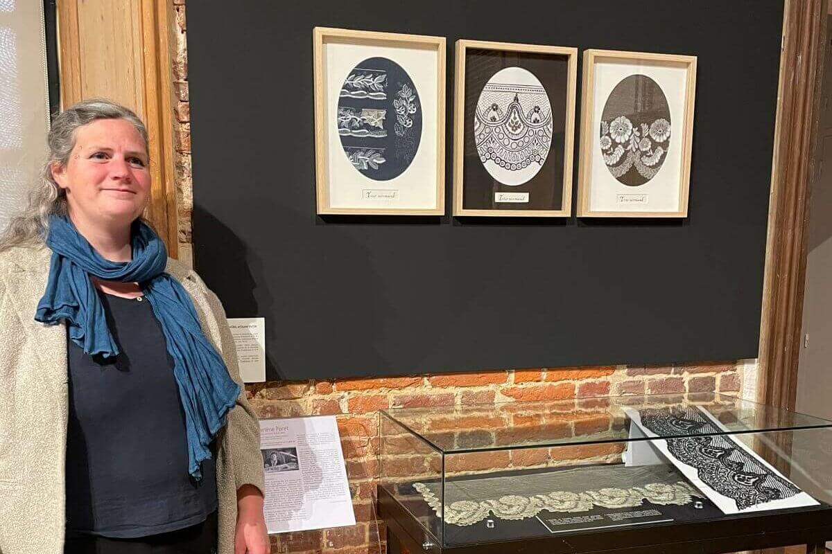 Dessin et dentelle au point d’Alençon, création inspirés des motifs sculptés d’une armoire normande, de la salle des armoires, des collections du château de Martainville, musée des traditions normande.