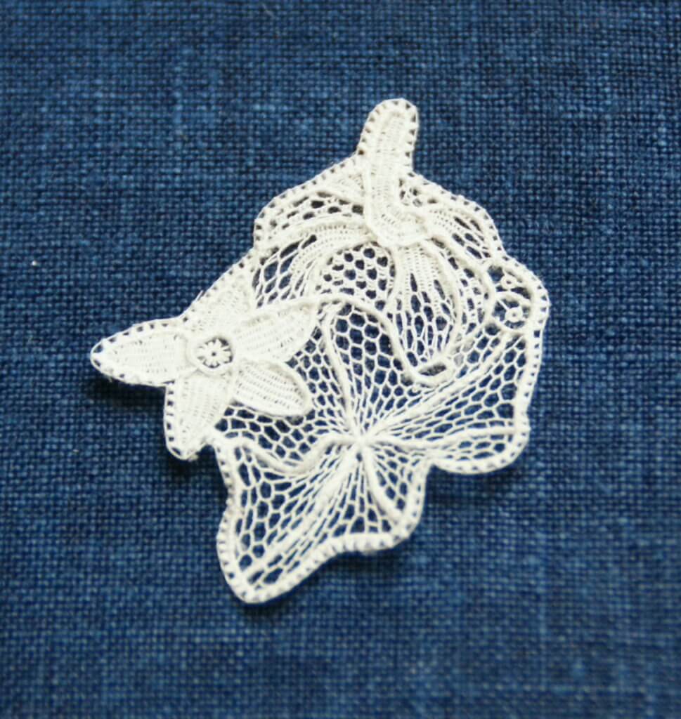 Les dessins sont pour certain des motifs historique issu des archives départementale de l’Orne ou des différentes structures dans lequel j’expose. Soit des créations libres ou inspiré des collections des lieux d’exposition. Tous les éléments de dentelle au point d’Alençon sont entièrement réalisées au sein de l’atelier.